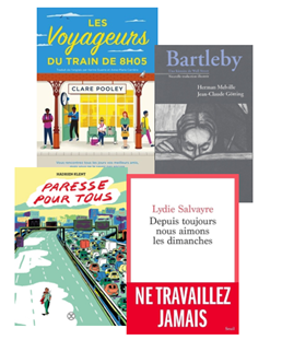 Si vous voulez résister et vous révolter tout doucement sans faire de bruit alors faite-le avec Bartleby : une histoire de wall street de Herman Melville et Jean-Claude Gotting ! Si vous pensez que la paresse devrait être un droit pour tous, plongez-vous dans Paresse pour tous de Hadrien Klent ou Depuis toujours nous aimons les dimanches de Lydie Salvayre. Et si vous adorez prendre le train et rencontrer des inconnus, embarquez avec Les voyageurs du train de 8h05 de Clare Pooley.