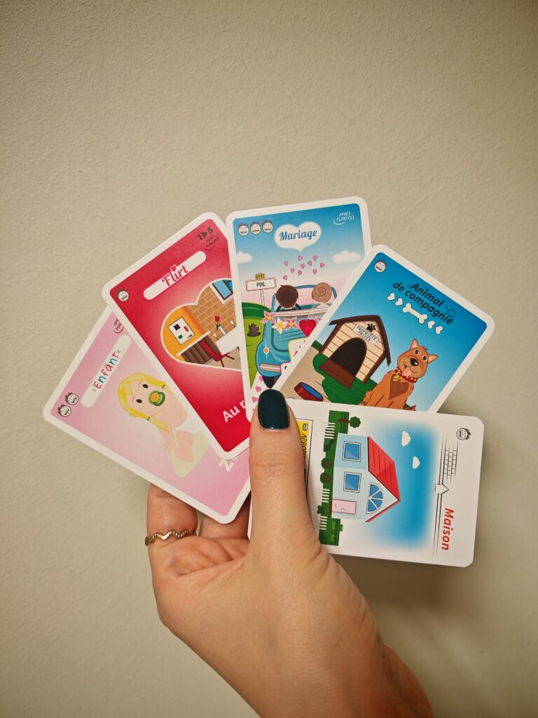 À chaque tour, vous posez des cartes pour faire évoluer votre personnage : études, métier, amour, enfants, loisirs, réussite sociale… L’objectif ? Avoir la vie la plus “accomplie” possible à la fin de la partie.